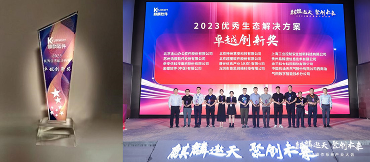 今年4月,麒麟软件启动了第一届麒麟软件优秀解决方案的评选活动。历经三个月的时间,收集了数百个报名伙伴提交的解决方案。最终,金蝶云·苍穹提供的《可组装企业级PaaS平台解决方案》从众多方案中脱颖而出,荣获2023优秀生态解决方案“卓越创新奖”。