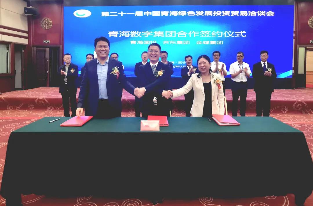 7月23日,青海国投与金蝶、京东三方共同出资、合作组建的青海省数字经济发展集团公司(以下简称“数字集团”)签约仪式在西宁举行。青海省副省长王黎明、省工信厅厅长洪涛、省工信厅一级巡视员、副厅长杨忠、金蝶集团董事局主席助理王建伟、青海国投公司董事长李学军、京东集团技术委员会主席、京东智联云总裁周伯文等出席了仪式。