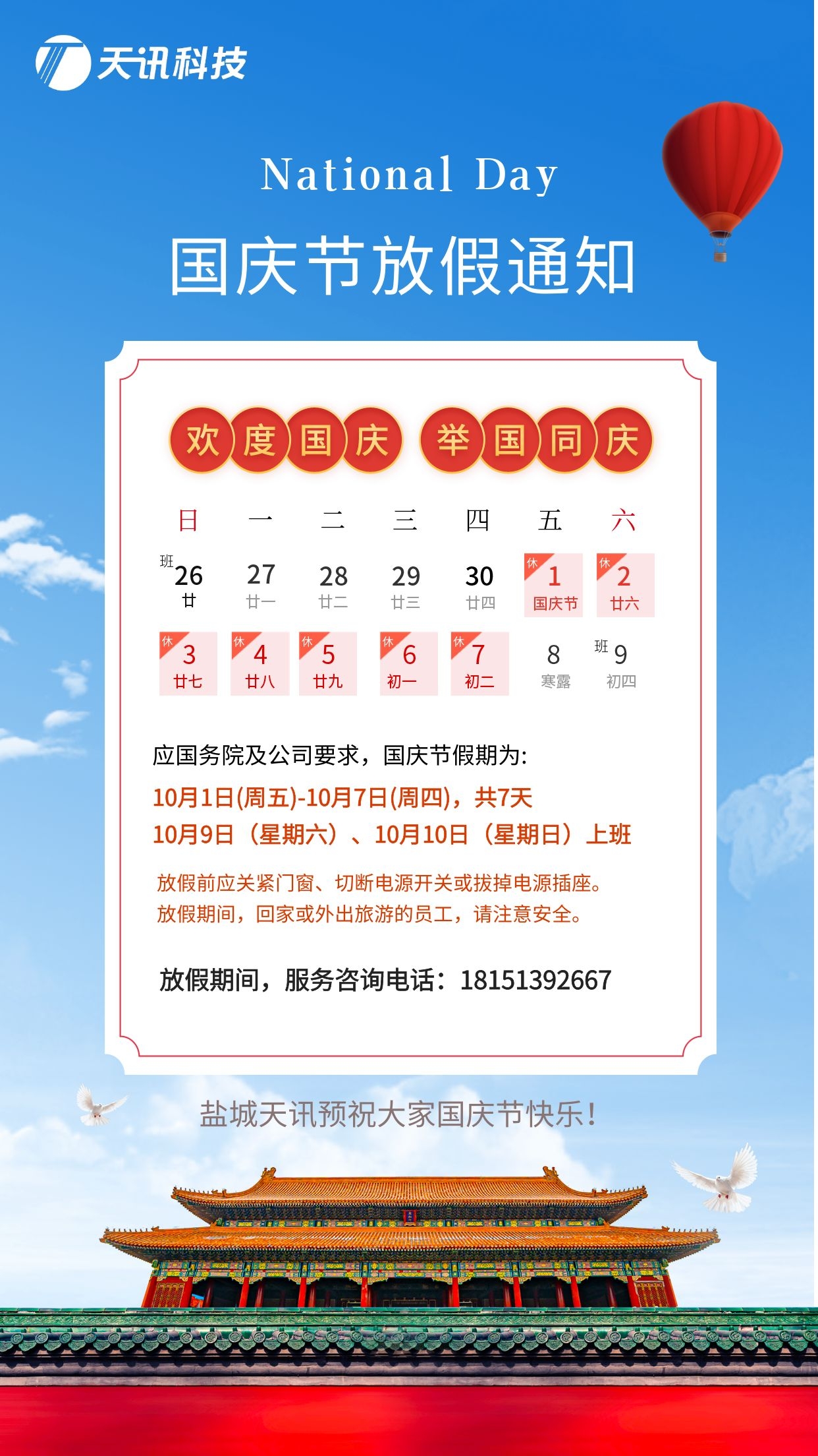 盐城天讯国庆节放假通知