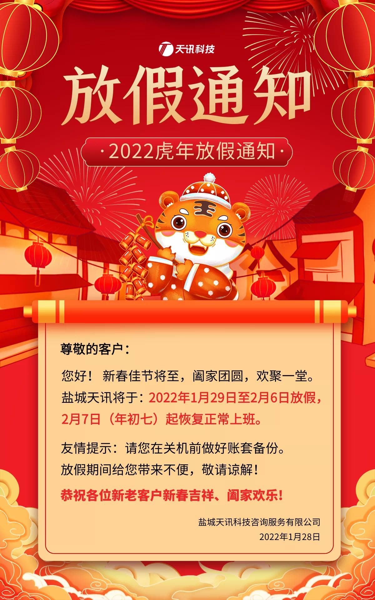 盐城天讯春节放假通知
