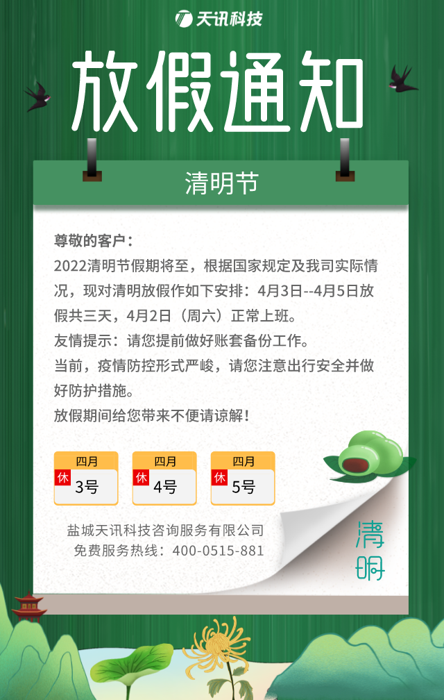 盐城天讯清明节放假通知