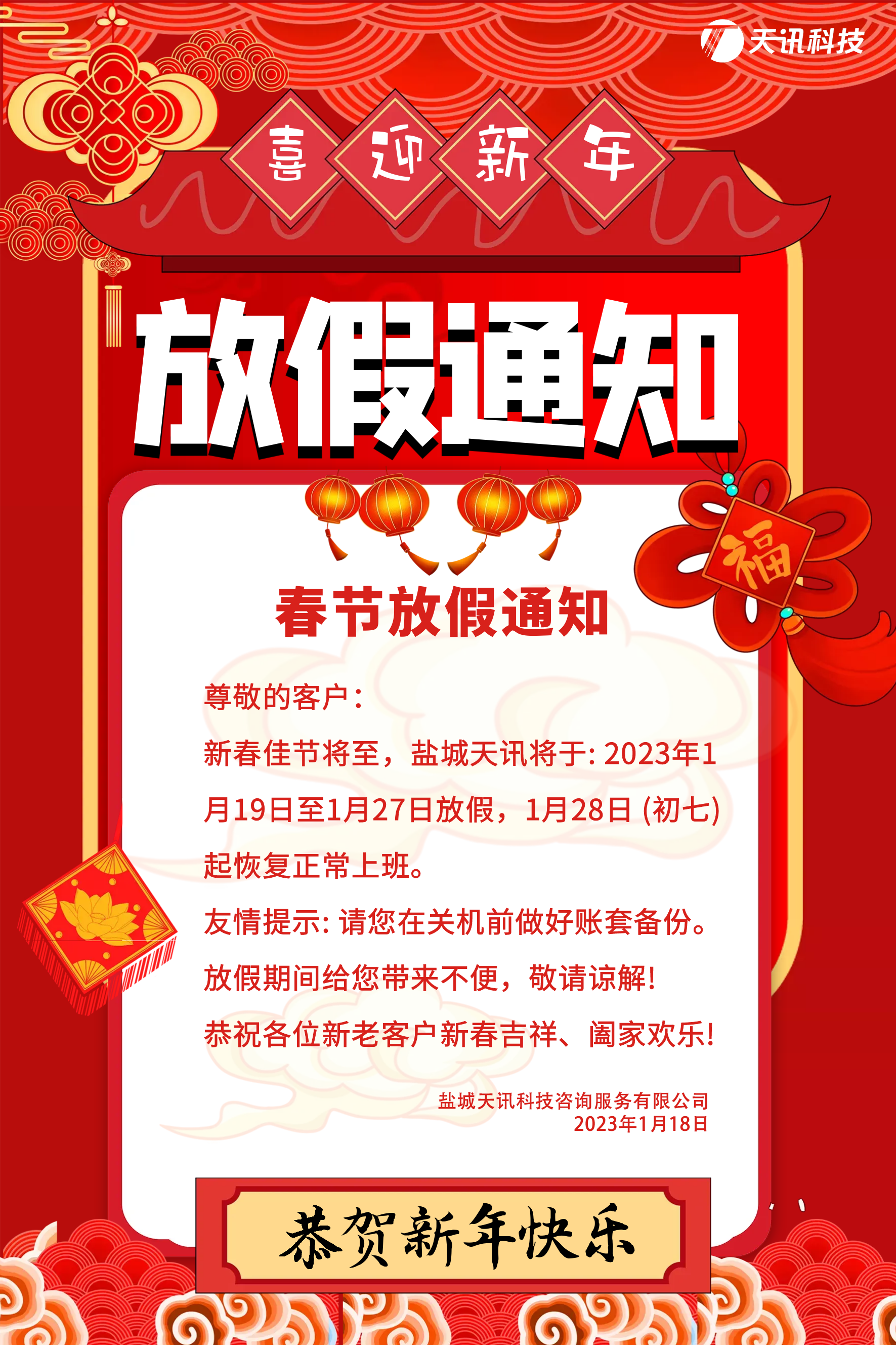 盐城天讯放假通知